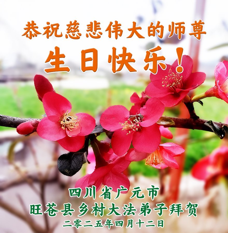 感恩师尊慈悲苦度,师尊您辛苦了! 法轮大法好,真善忍好。 天津市武清区某乡村一学法小组全体大法弟子敬上 四川省广元市旺苍县乡村大法弟子恭贺世界法轮大法日暨慈悲伟大的师尊生日快乐!