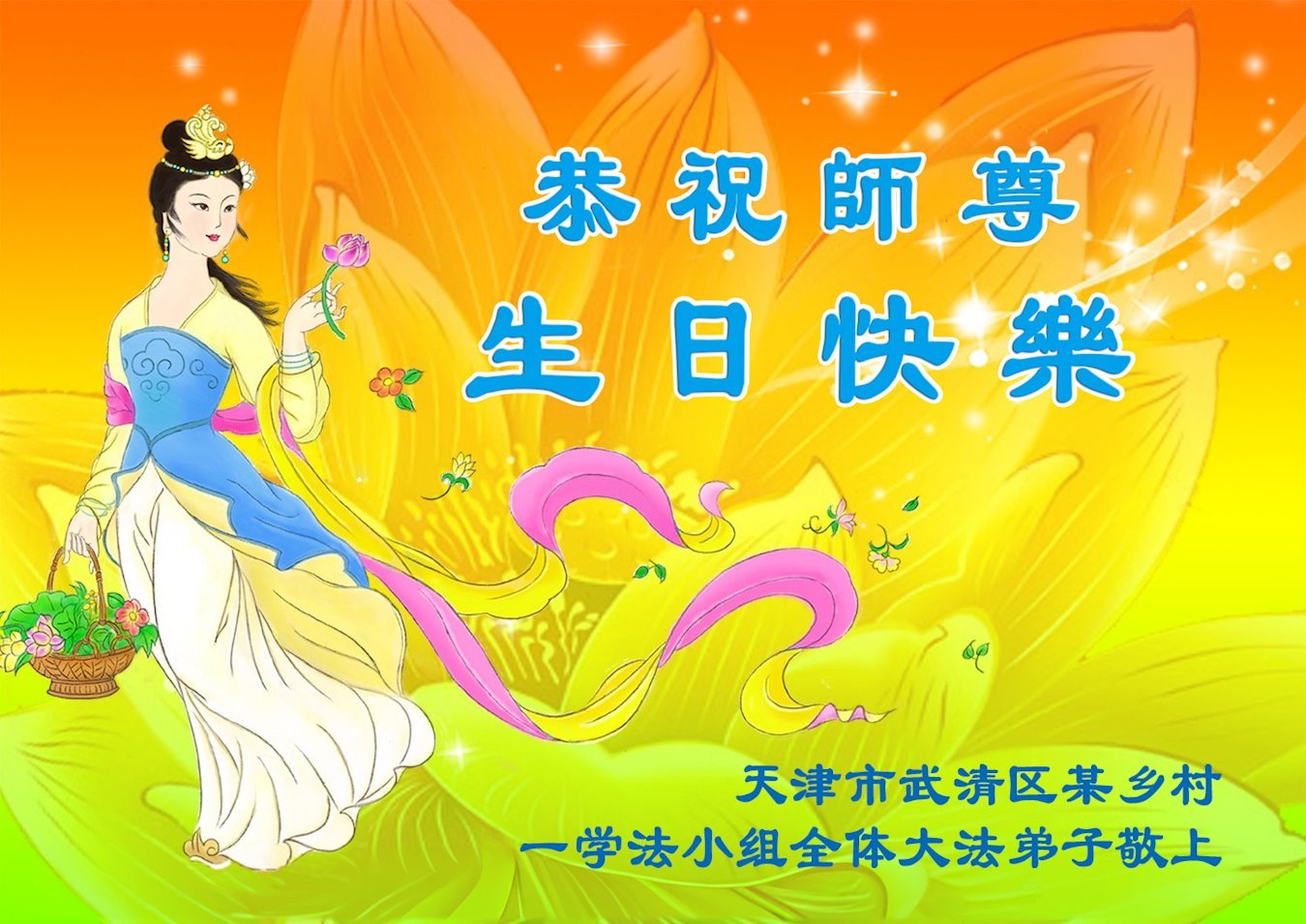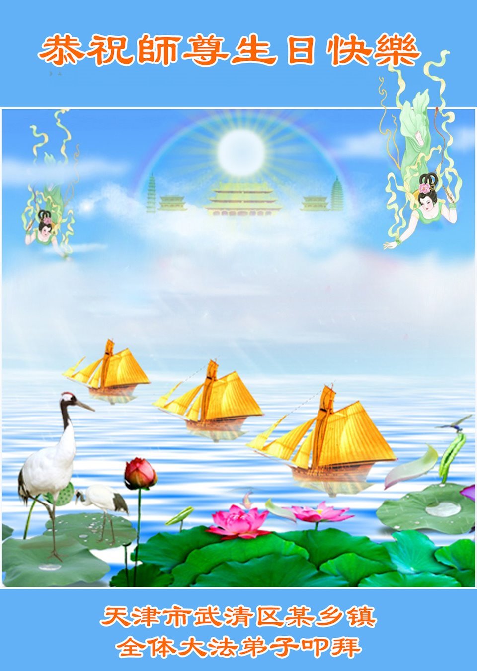 天津市武清区某乡镇全体大法弟子恭贺世界法轮大法日!恭祝师尊生日快乐!