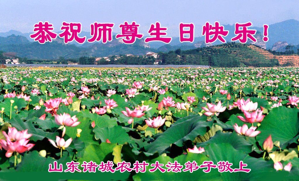 恭祝慈悲伟大的师尊生日快乐! 普天同庆世界法轮大法日! 山东省淄博市淄川区农村大法弟子敬上 辽宁省抚顺市新宾县农村五名大法弟子恭祝师尊生日快乐!恭贺世界法轮大法日!