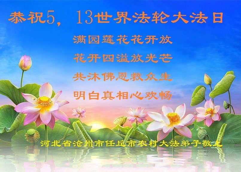 河北省沧州市任丘市农村大法弟子恭贺世界法轮大法日暨敬祝师父生日快乐!