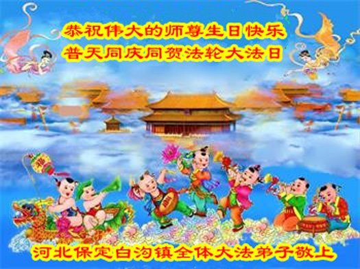 河北保定白沟全体大法弟子普天同庆同贺世界法轮大法好!敬祝伟大师尊生日快乐!