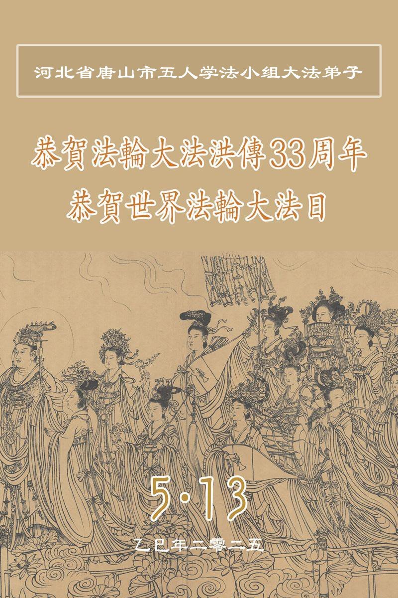 河北唐山市一家大法弟子恭祝三十三届法轮大法日暨敬祝师尊华诞!