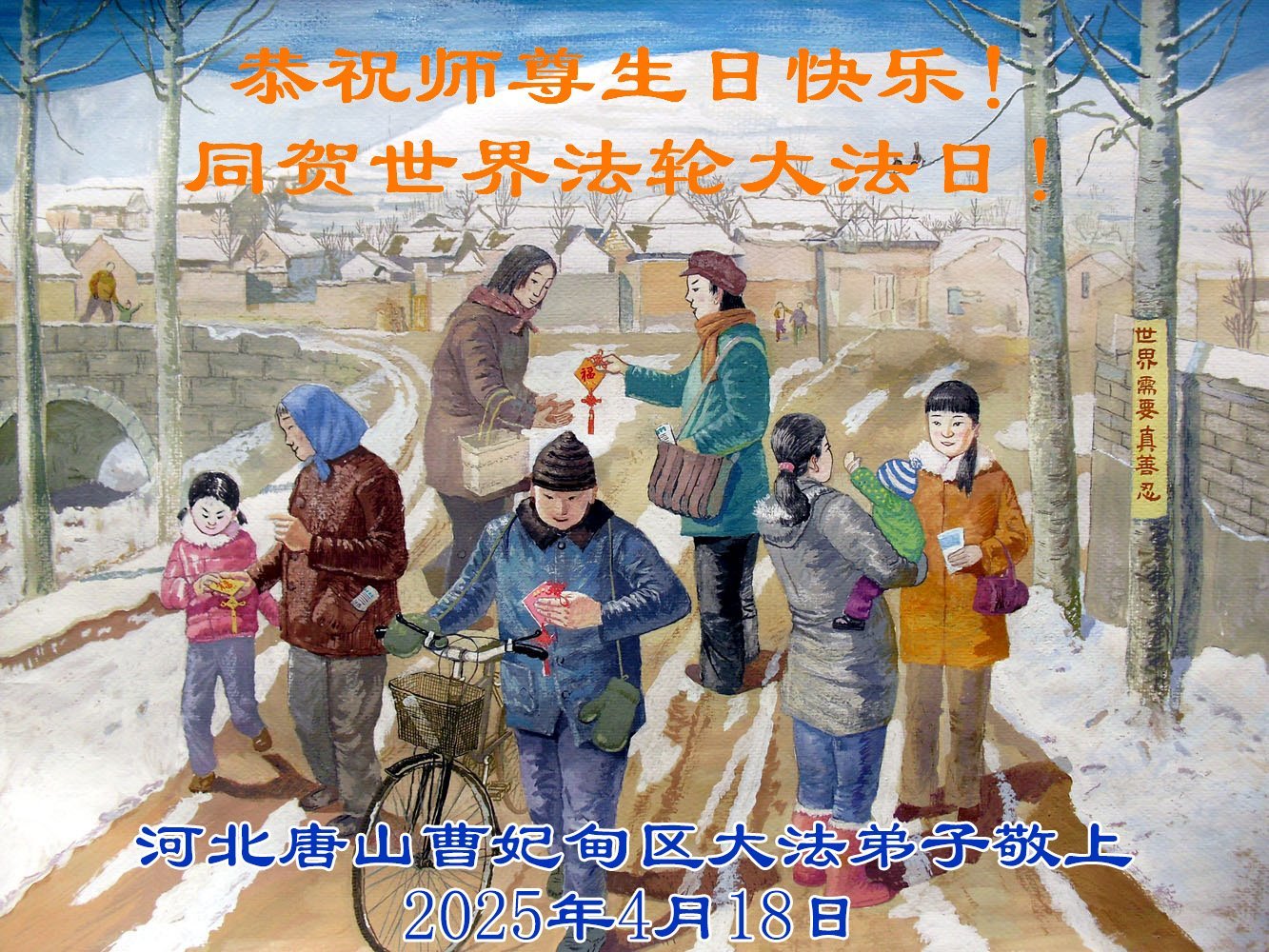 恭贺法轮大法洪传三十三周年!真善忍好!法轮大法好! 恭贺世界法轮大法日! 恭祝师尊华诞! 河北唐山大法弟子敬上 二零二五年四月十九日 河北唐山迁西四人学法小组大法弟子恭贺世界法轮大法日暨师尊生日快乐!