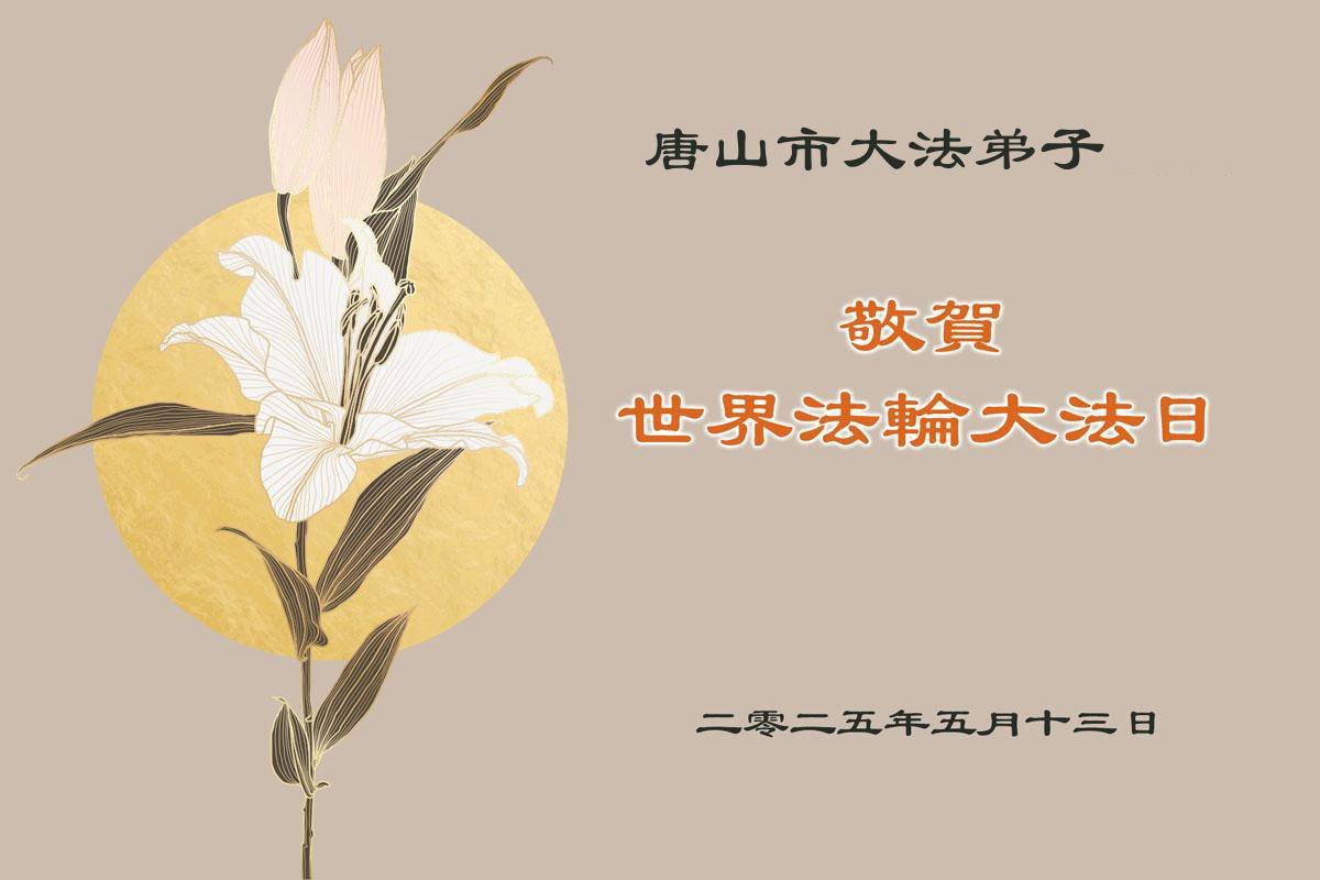 恭贺法轮大法洪传三十三周年!真善忍好!法轮大法好! 恭贺世界法轮大法日! 恭祝慈悲伟大的师尊生日快乐! 师父好!谢谢师父慈悲救度!谢谢师父无上的恩典!师父辛苦了!师恩浩荡!叩谢师尊! 河北唐山丰润全体大法弟子敬上 二零二五年四月十九日 河北唐山大法弟子恭贺世界法轮大法日!恭祝师尊华诞!