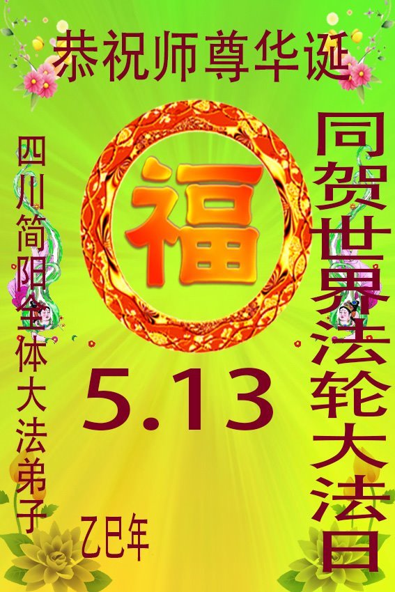 四川省资阳市简阳市大法弟子恭贺513世界法轮大法日暨师尊生日快乐!