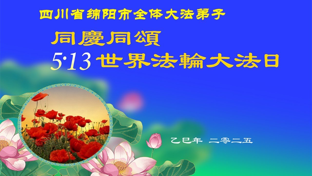 恭贺法轮大法洪传33周年! 恭贺5.13世界法轮大法日! 恭祝师尊华诞! 四川省绵阳市大法弟子敬上 2025年4月29日 四川省绵阳市一学法小组大法弟子庆贺世界法轮大法日!
