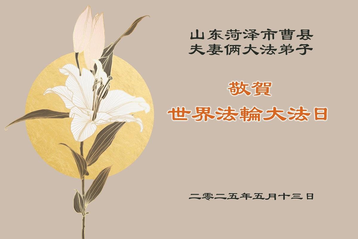山东省菏泽市曹县夫妻大法弟子恭贺世界法轮大法日!