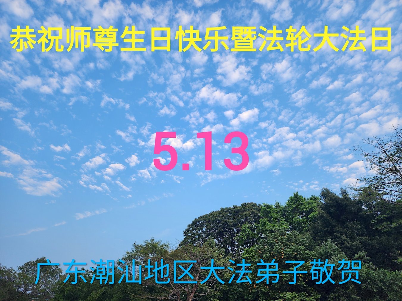 恭贺世界法轮大法日! 广东省潮汕地区大法弟子敬上 广东省汕头市大法弟子恭祝师尊生日快乐!恭贺世界法轮大法日!