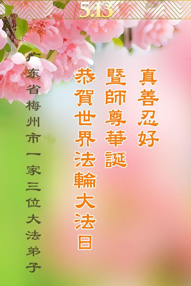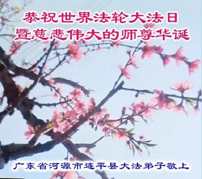 恭贺5.13世界法轮大法日! 师尊辛苦了,感恩师尊救度之恩。 广东省河源市连平县大法弟子敬上 广东省深圳大法弟子恭贺世界法轮大法日暨师父华诞!