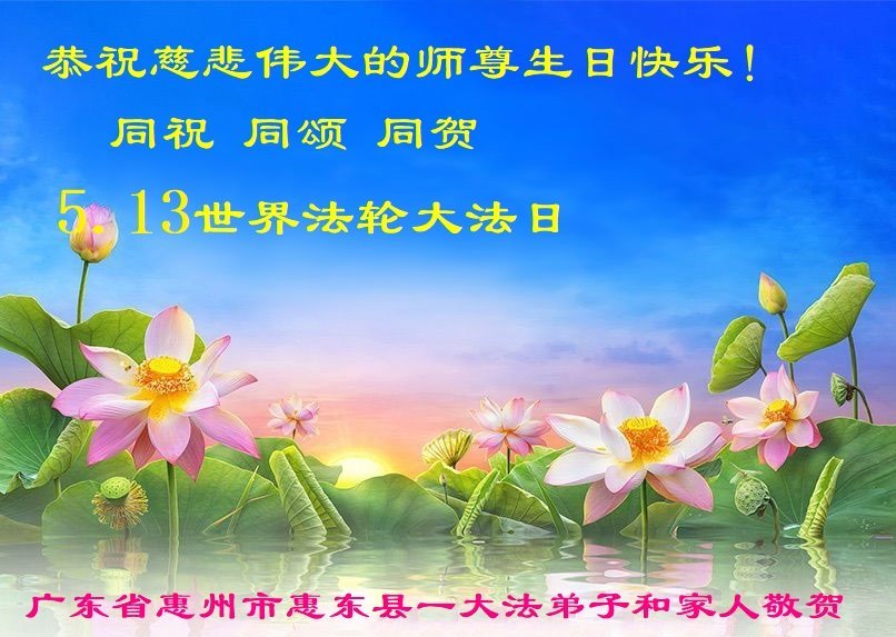 广东省惠州市惠东县一大法弟子和家人恭贺世界法轮大法日暨慈悲伟大的师尊生日快乐!