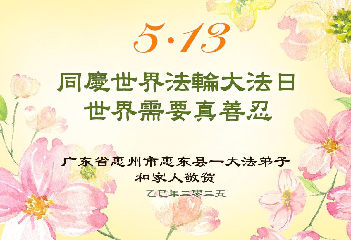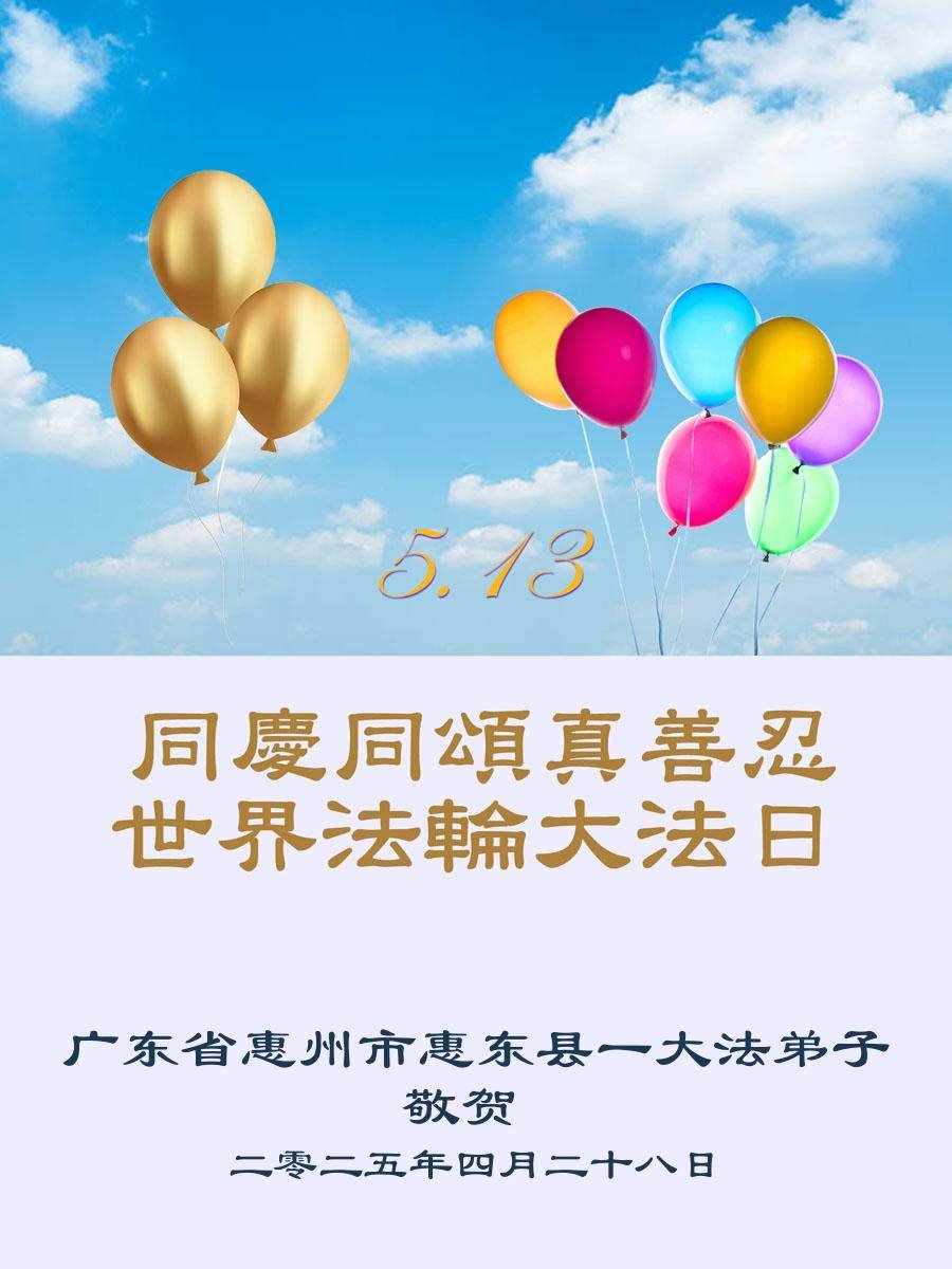 【明慧网二零二五年五月十日】 广东省惠州市一家大法弟子恭贺世界法轮大法日暨师尊华诞!
