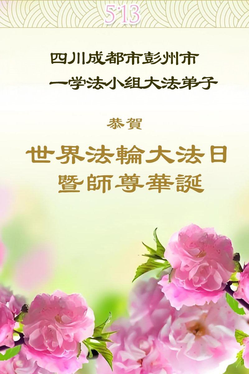 恭贺5·13世界法轮大法日!恭祝师尊华诞! 四川省成都市府南新区七人学法小组大法弟子敬上 四川省成都市马家寺学法小组大法弟子恭祝师父生日快乐!恭贺世界法轮大法日!