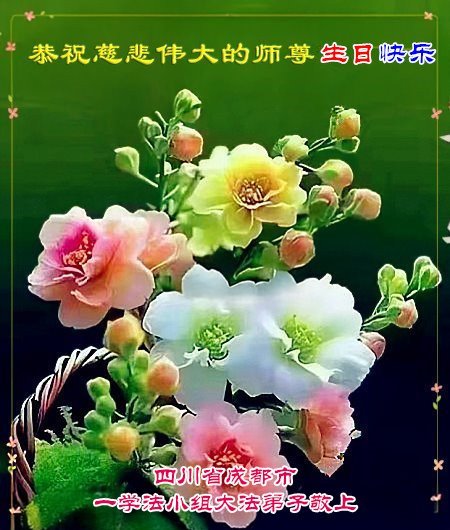 恭祝师父生日快乐!恭贺世界法轮大法日! 四川省成都市马家寺学法小组大法弟子敬上 四川省成都青白江大法弟子恭贺世界法轮大法日暨师尊华诞!