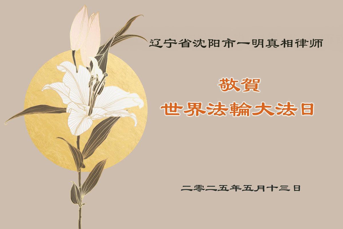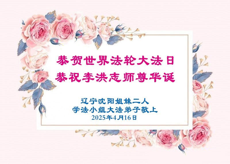 辽宁省沈阳市和平区一学法小组大法弟子敬上 二零二五年四月二十八日 辽宁省沈阳市一明真相律师恭祝师父生日快乐!恭贺世界法轮大法日!