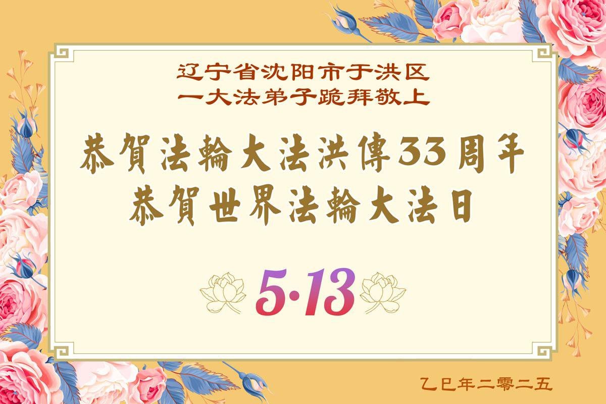 【明慧网二零二五年五月十日】 辽宁省沈阳市一大法弟子恭祝师尊华诞!恭贺世界法轮大法日!
