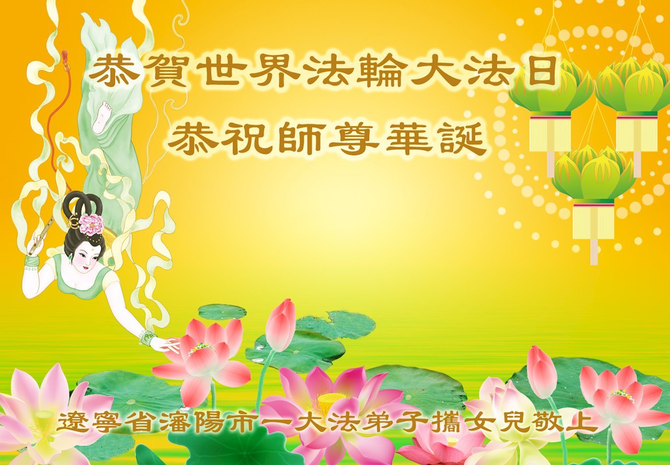 恭祝师尊华诞!恭贺世界法轮大法日! 辽宁省沈阳市一大法弟子敬上 辽宁省沈阳市一大法弟子携女儿恭贺世界法轮大法日暨师尊华诞!