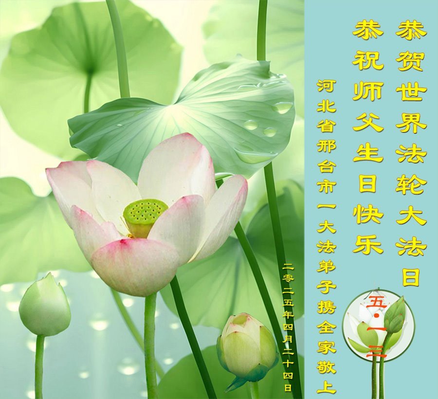 河北省衡水市一弟子携全家敬上 二零二五年四月二十六日 河北省衡水市一学法小组大法弟子恭贺世界法轮大法日暨师尊生日快乐!