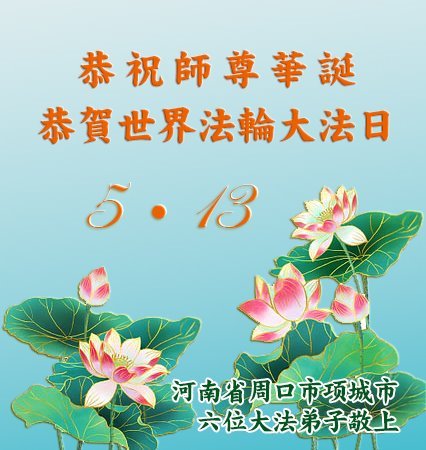 河南省周口市项城市六位大法弟子恭贺世界法轮大法日暨师尊华诞!