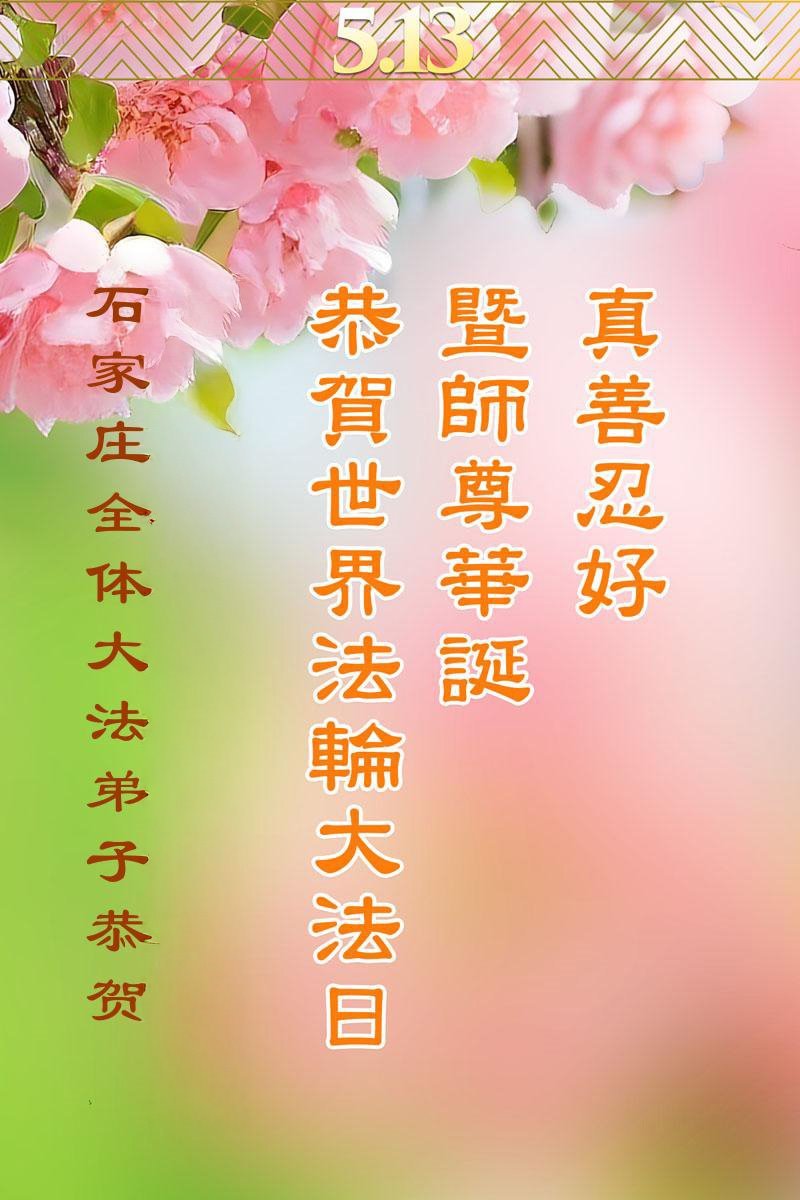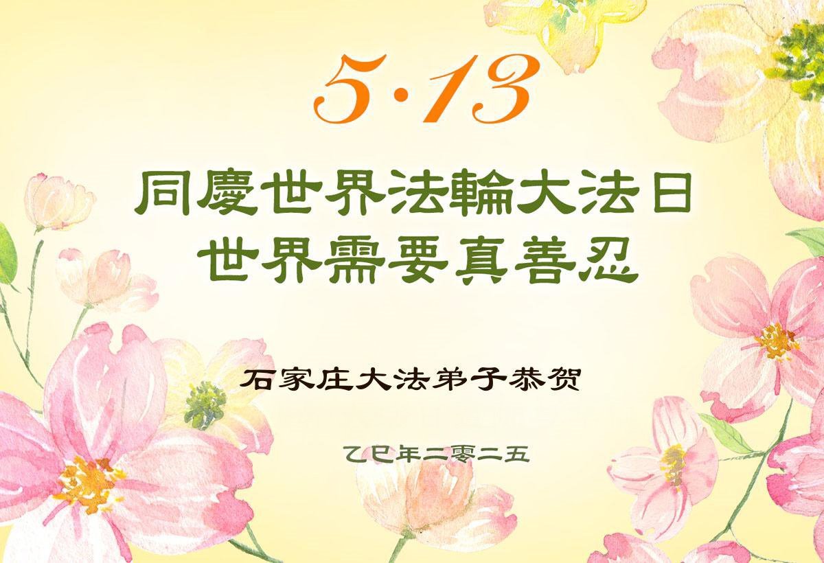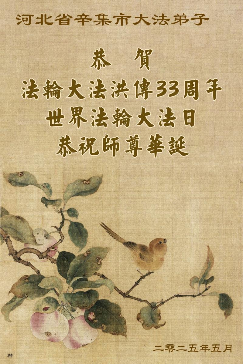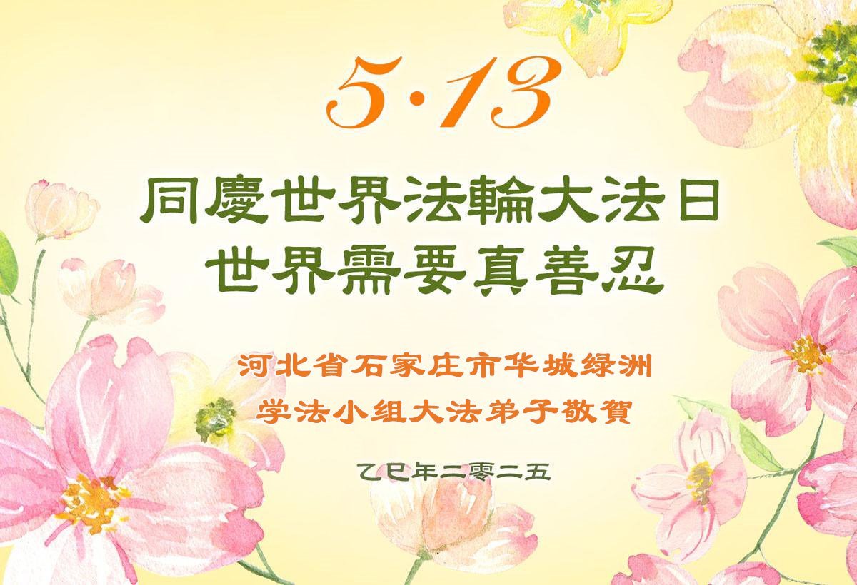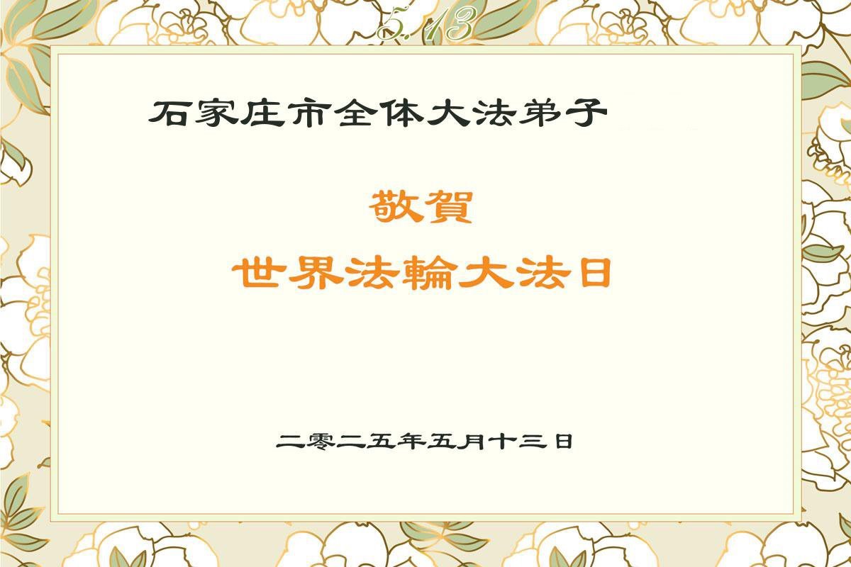 河北省石家庄市华城学法小组全体大法弟子敬上 二零二五年四月二十五日 河北省石家庄市赵县一女大法弟子恭贺世界法轮大法日暨师父华诞!