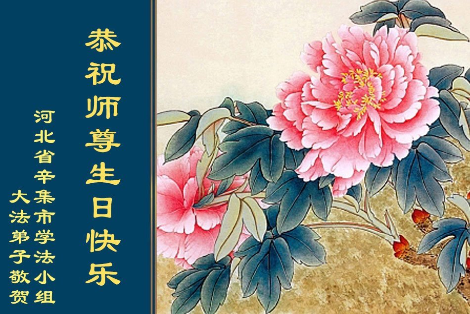 恭贺世界法轮大法日! 恭祝师尊生日快乐! 我们定会做好三件事,让师父多一些欣慰,少一些操劳!努力学法精進实修。 河北省石家庄辛集市一学法小组全体大法弟子敬上 河北石家庄市一大法弟子全家恭贺世界法轮大法日暨师尊华诞!
