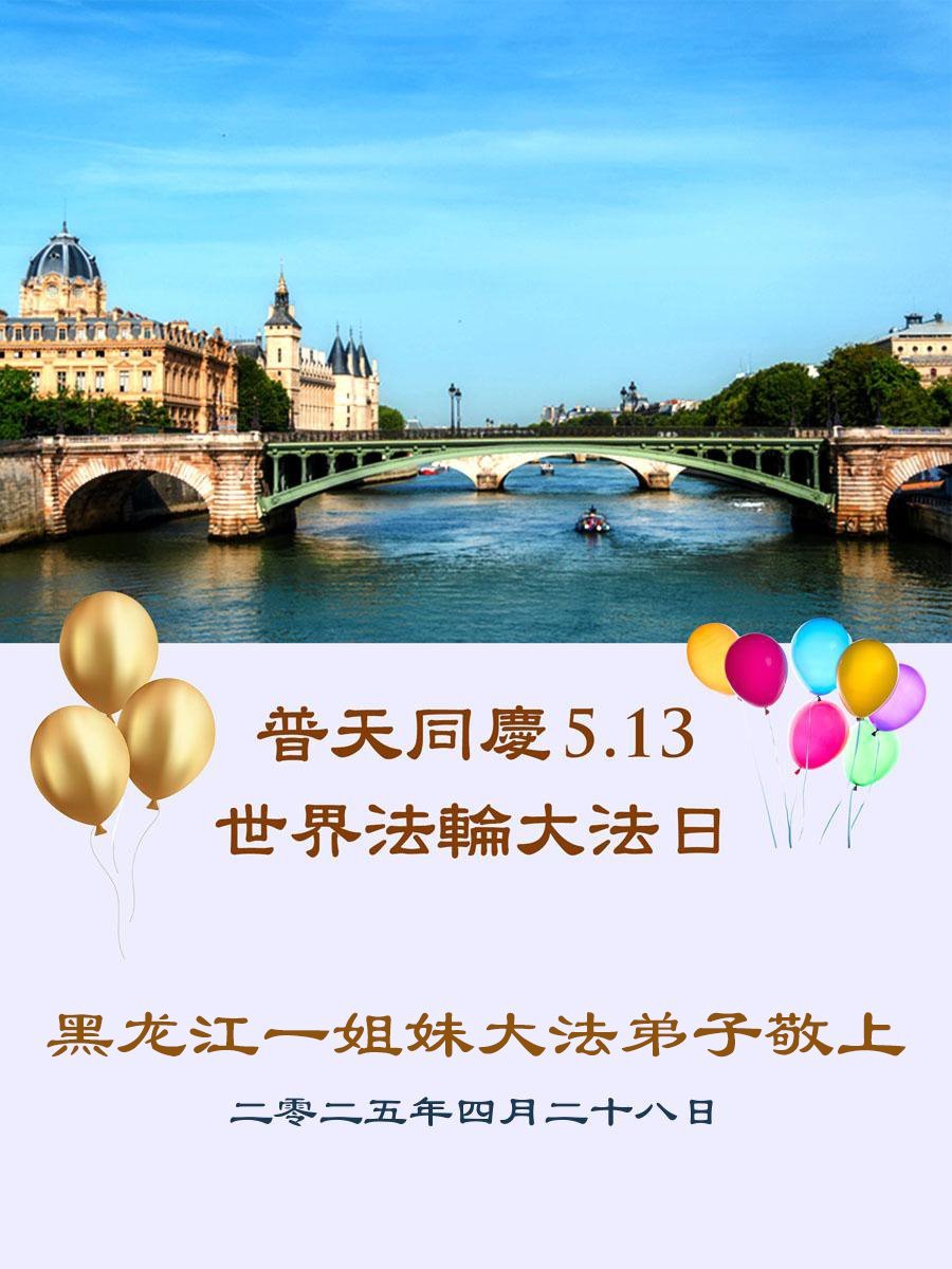 【明慧网二零二五年五月十日】 黑龙江大法弟子恭贺世界法轮大法日暨敬祝师父生日快乐!