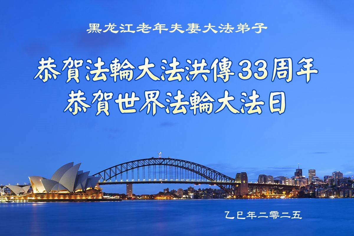 黑龙江大法弟子夫妻同修恭贺世界法轮大法日暨敬祝师父生日快乐!