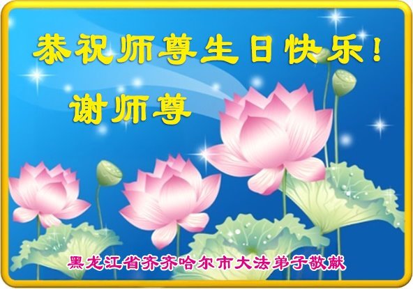 黑龙江省齐齐哈尔市老大法弟子恭祝师尊生日快乐!恭贺世界法轮大法日!