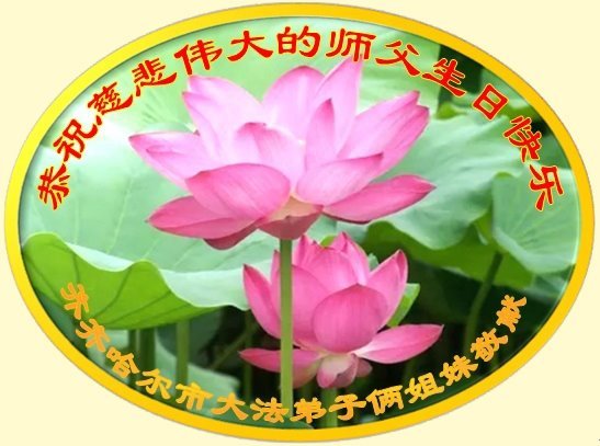 黑龙江省齐齐哈尔市大法弟子俩姐妹恭贺世界法轮大法日!恭祝慈悲伟大的师父生日快乐!