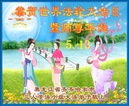 黑龙江省齐齐哈尔市大法弟子三人小组恭贺世界法轮大法日暨师尊华诞!