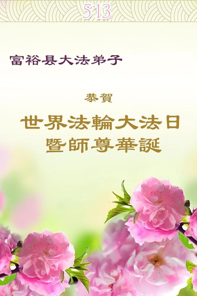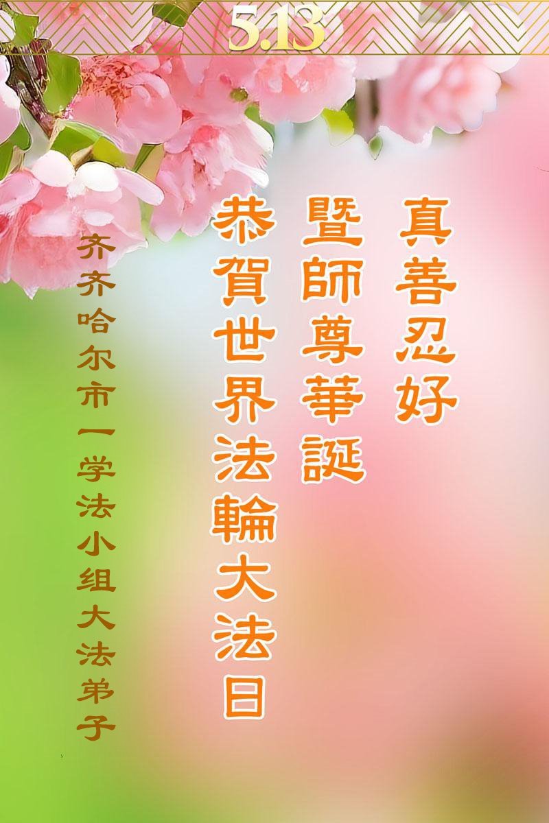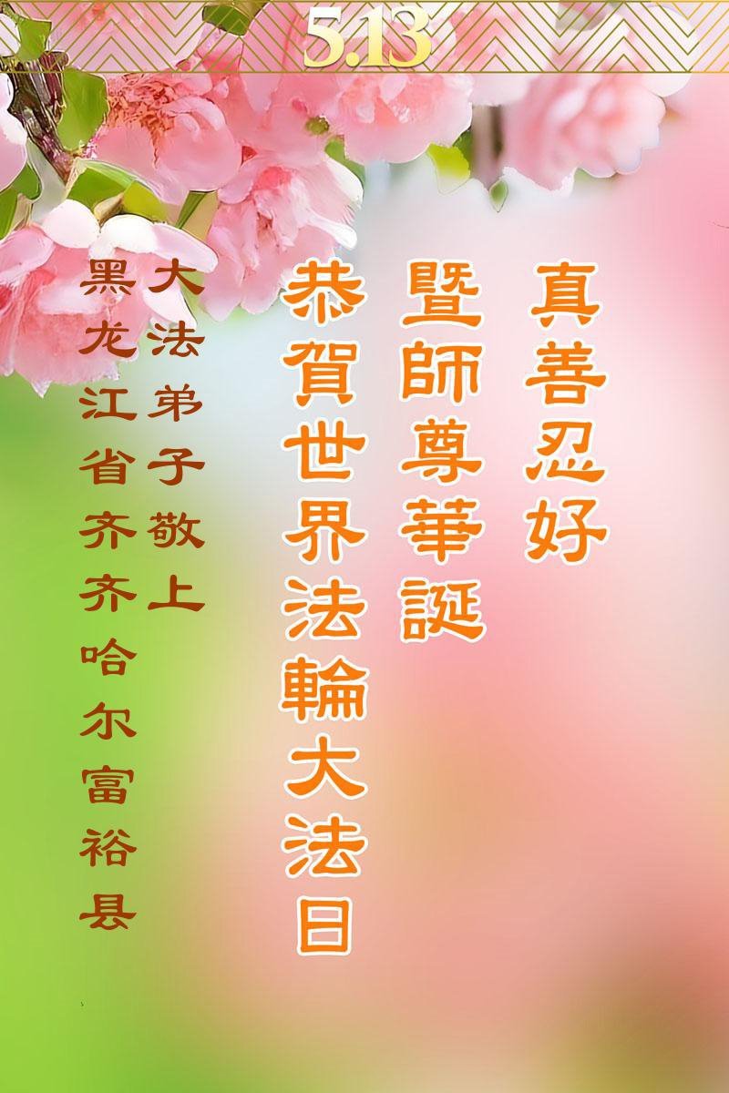 【明慧网二零二五年五月十日】 黑龙江省齐齐哈尔市富裕县大法弟子恭贺世界法轮大法日暨师父生日快乐!