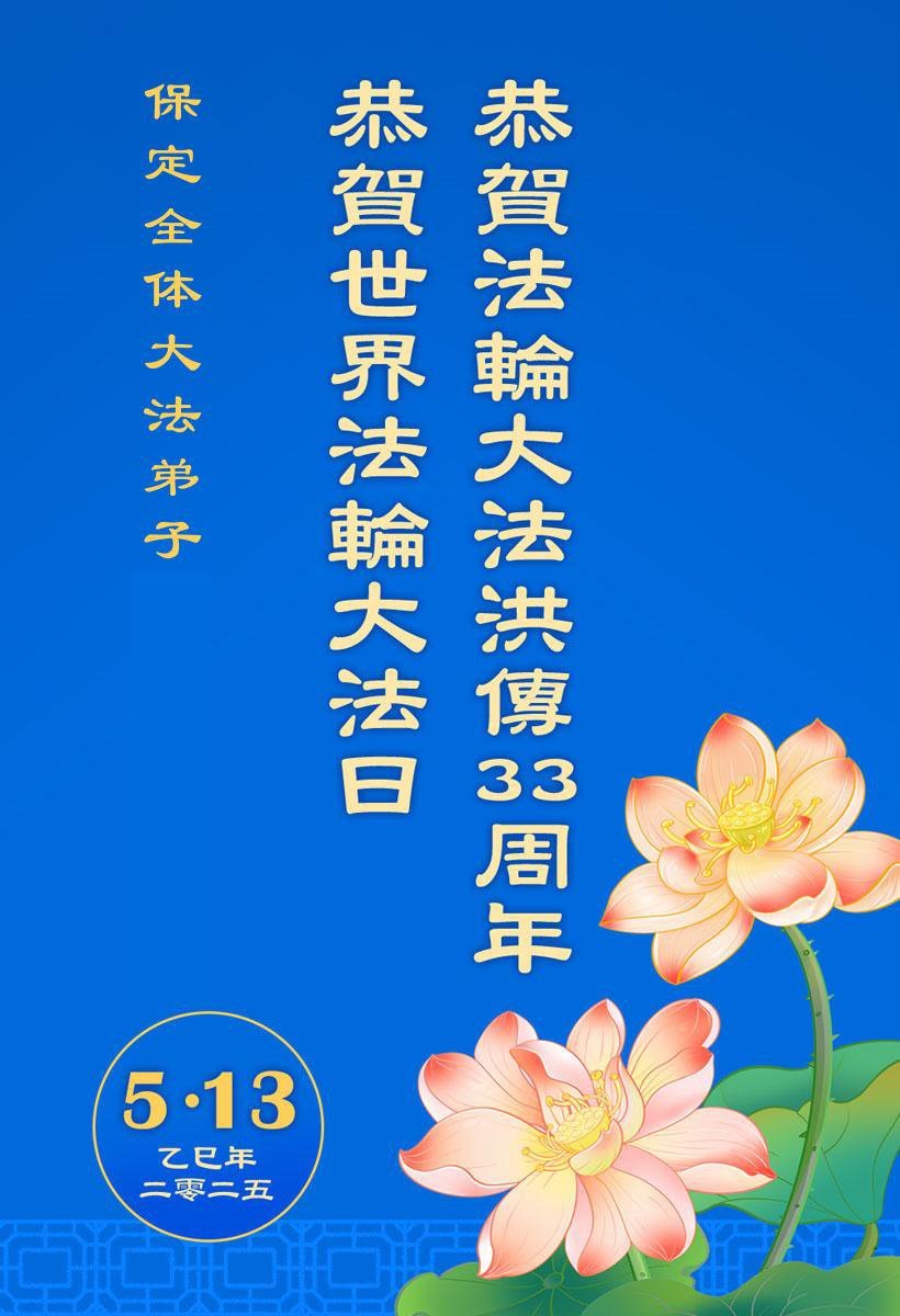 【明慧网二零二五年五月十日】 河北省保定市满城区一大法弟子恭贺世界法轮大法日暨敬祝慈悲伟大的师父生日快乐!