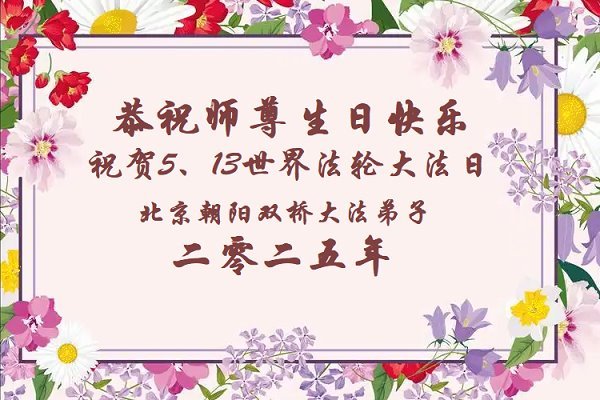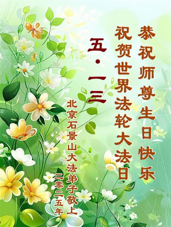 恭贺5.13世界法轮大法日! 恭祝师父生日快乐! 北京旧宫一大法弟子敬上 2025年4月20日 |