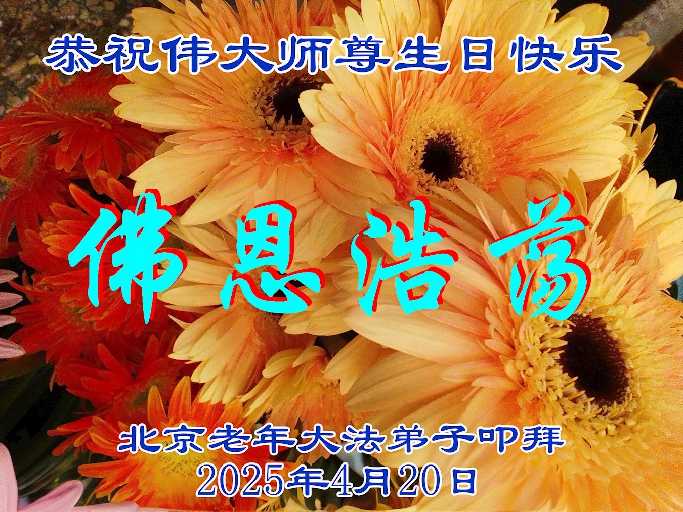 恭贺世界法轮大法日! 恭祝师父生日快乐!师父辛苦了! 北京市昌平区大法弟子敬上 二零二五年四月十九日 北京大法弟子恭贺世界法轮大法日暨敬祝师尊华诞!