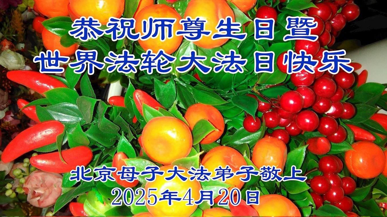恭贺5.13世界法轮大法日!世界需要真善忍! 恭祝师父生日快乐! 北京大兴一家庭学法小组大法弟子叩拜 2025年4月20日 北京旧宫一大法弟子恭贺5.13世界法轮大法日暨恭祝师父生日快乐!