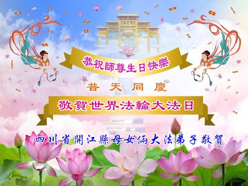 恭祝师尊生日快乐!敬贺世界法轮大法日! 四川省开江县母女俩大法弟子敬上 四川省达州市开江县一女大法弟子恭祝师尊生日快乐!敬贺世界法轮大法日!