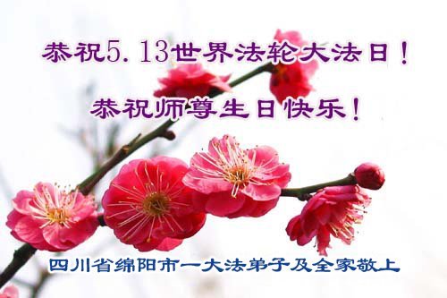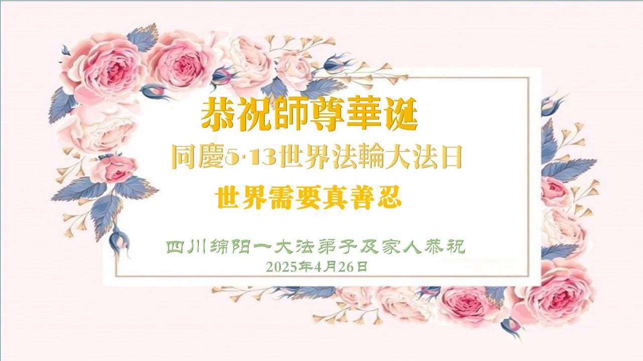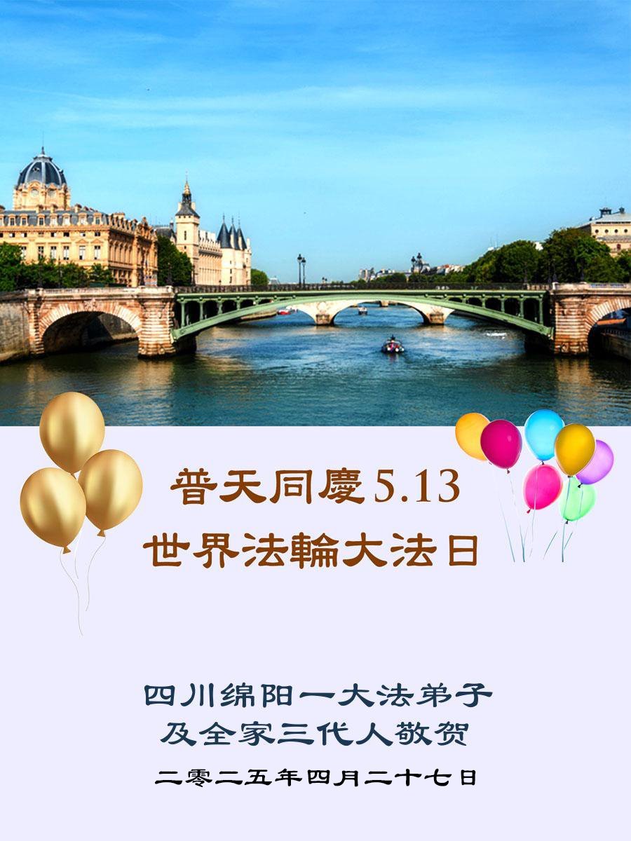 【明慧网二零二五年五月十日】 四川省绵阳市大法弟子及全家人恭贺世界法轮大法日!