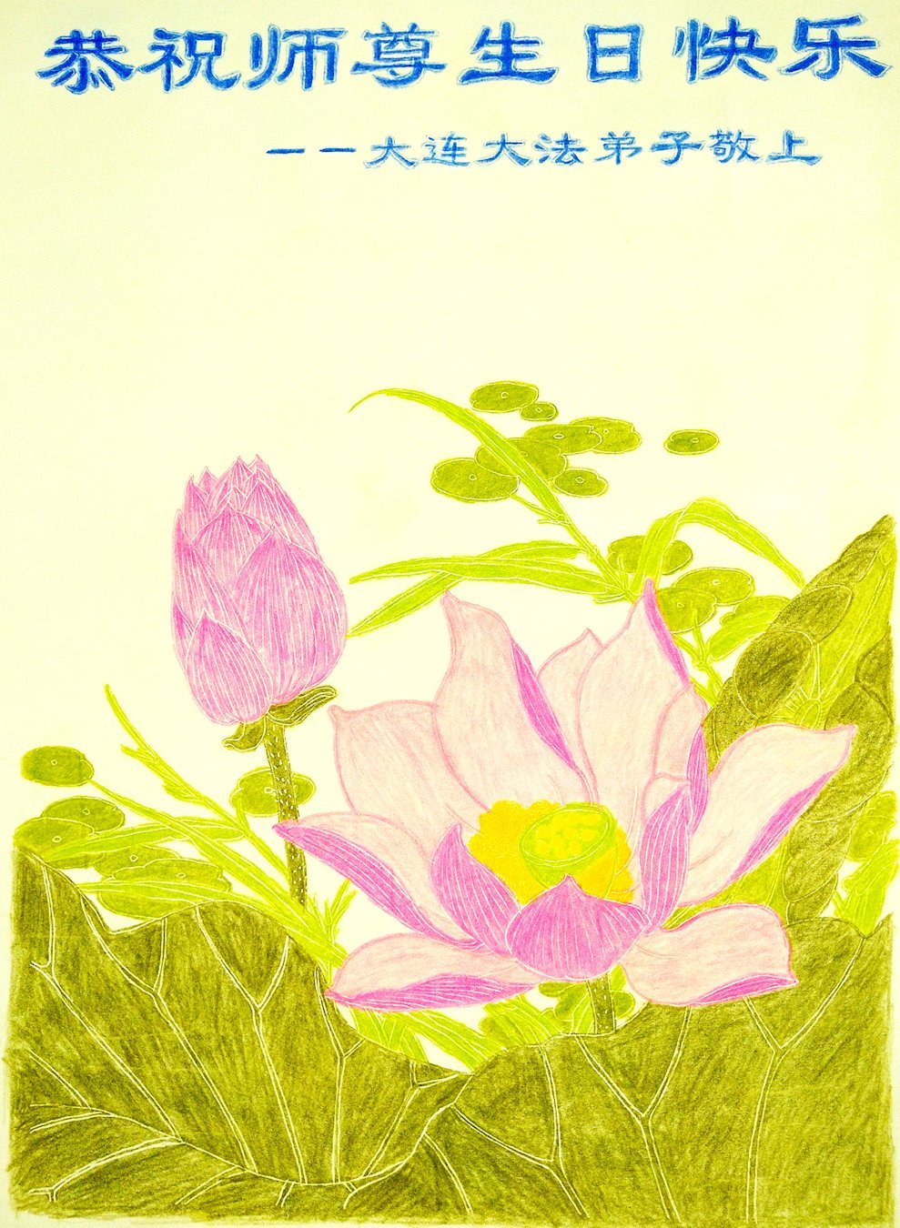 师尊生日快乐!感谢师尊救度之恩! 辽宁省大连市一学法小组大法弟子敬上 辽宁省大连市一大法弟子恭贺世界法轮大法日暨师父生日快乐!