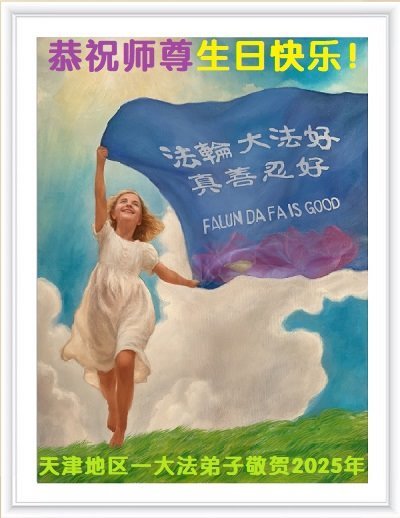 天津市一母子大法弟子敬上 2025年 天津市河北区一大法弟子恭贺世界法轮大法日暨师父生日快乐!