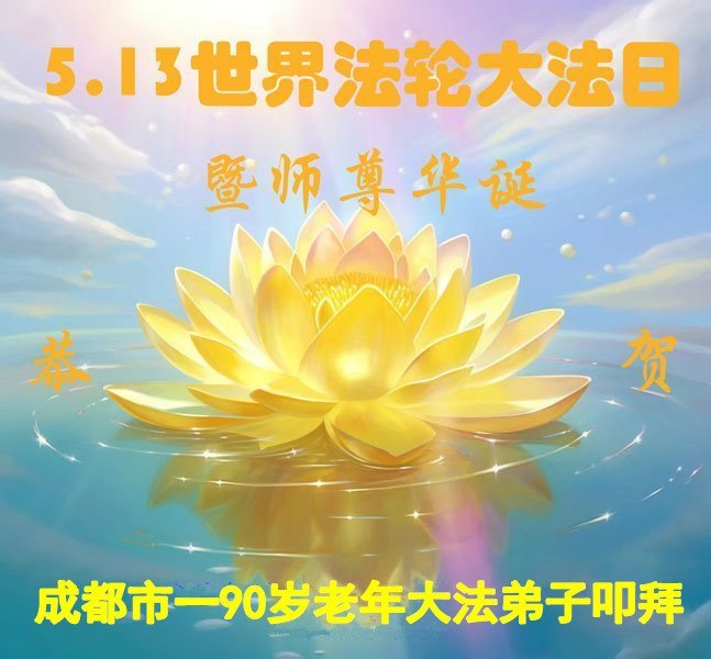 四川省成都市一90岁老年大法弟子恭贺5·13世界法轮大法日暨师尊华诞!