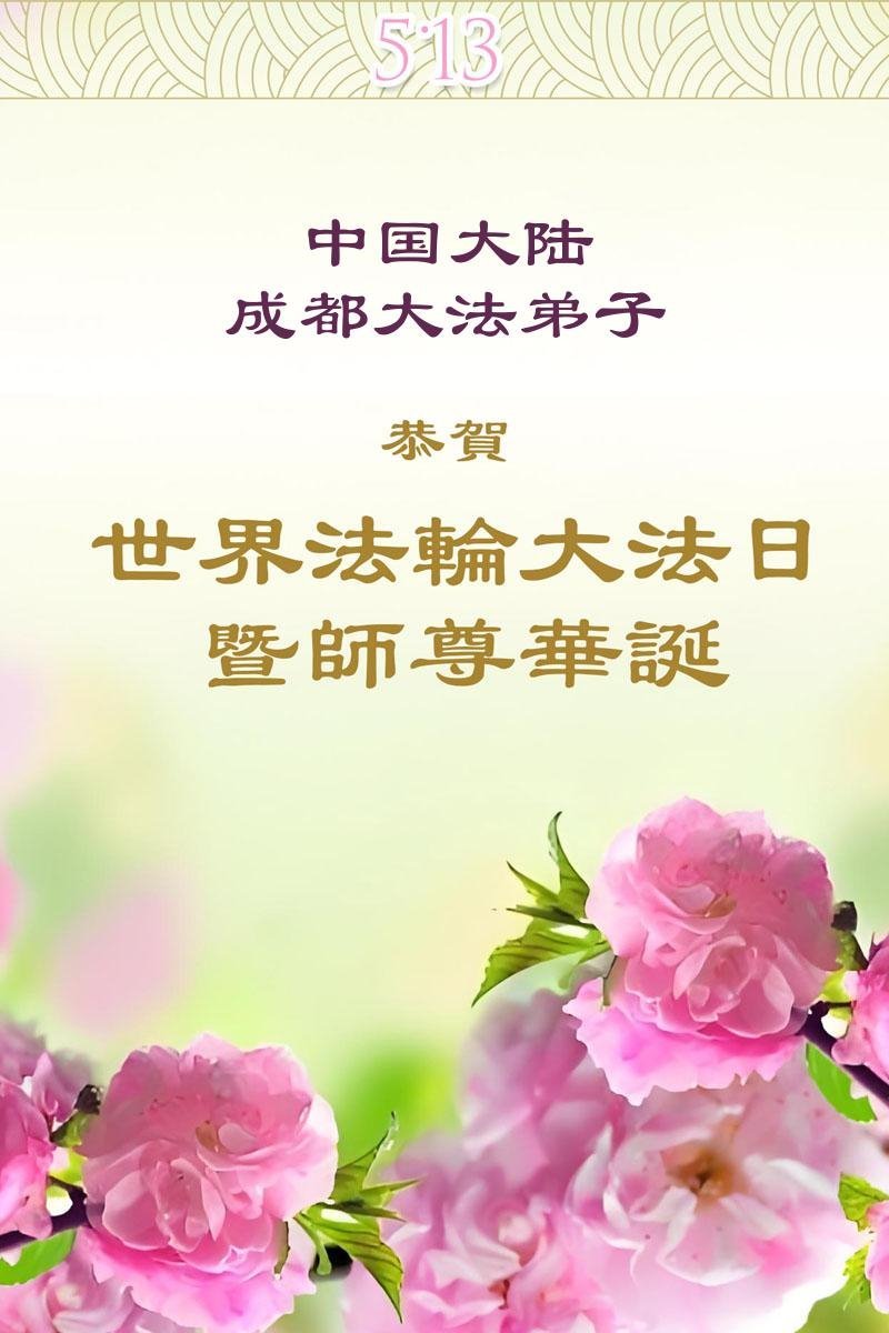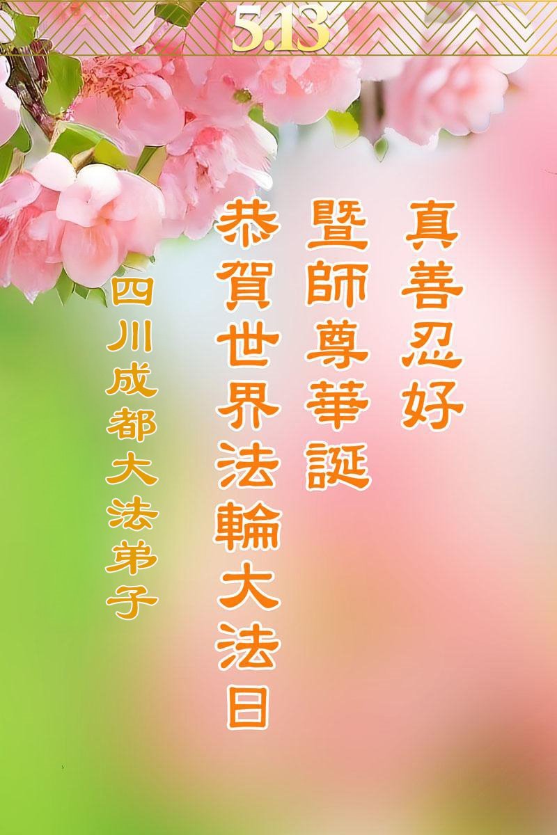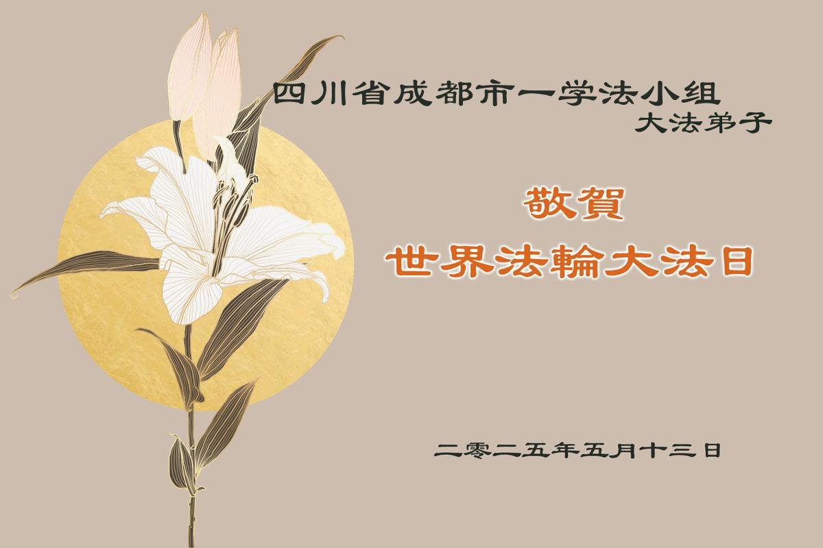 四川省成都市一学法小组大法弟子恭贺世界法轮大法日!