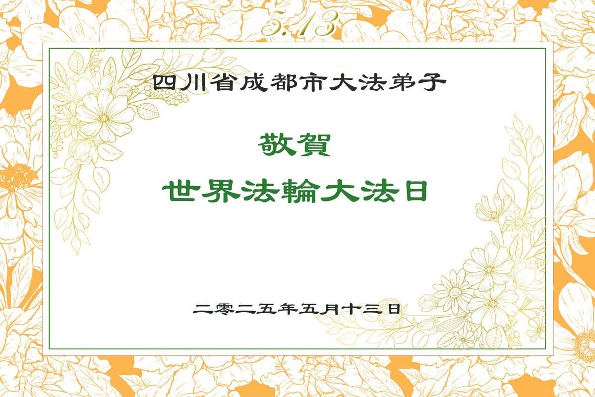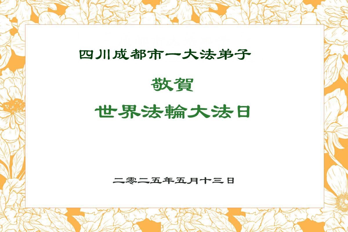法轮大法好!真善忍好! 四川省成都市一学法小组大法弟子敬上 二零二五年四月二十一日 四川省成都市彭州市大法弟子恭贺世界法轮大法日暨敬祝师尊华诞!