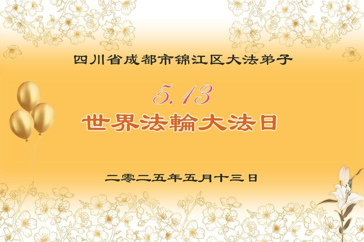 恭祝伟大的师尊生日快乐!同祝世界法轮大法日! 越到最后弟子更应该做好三件事,放下一切人心,跟师父回家。 四川成都大法弟子敬上 2025年4月21日 四川省成都市锦江区大法弟子恭贺世界法轮大法日暨师尊华诞!