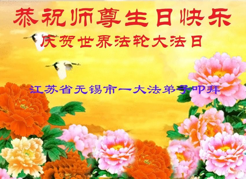 恭祝师尊华诞! 恭贺法轮大法洪传33周年! 恭贺世界法轮大法日! 江苏省淮安市大法弟子敬上 江苏省常州市一大法弟子恭贺世界法轮大法日!恭祝师尊生日快乐!