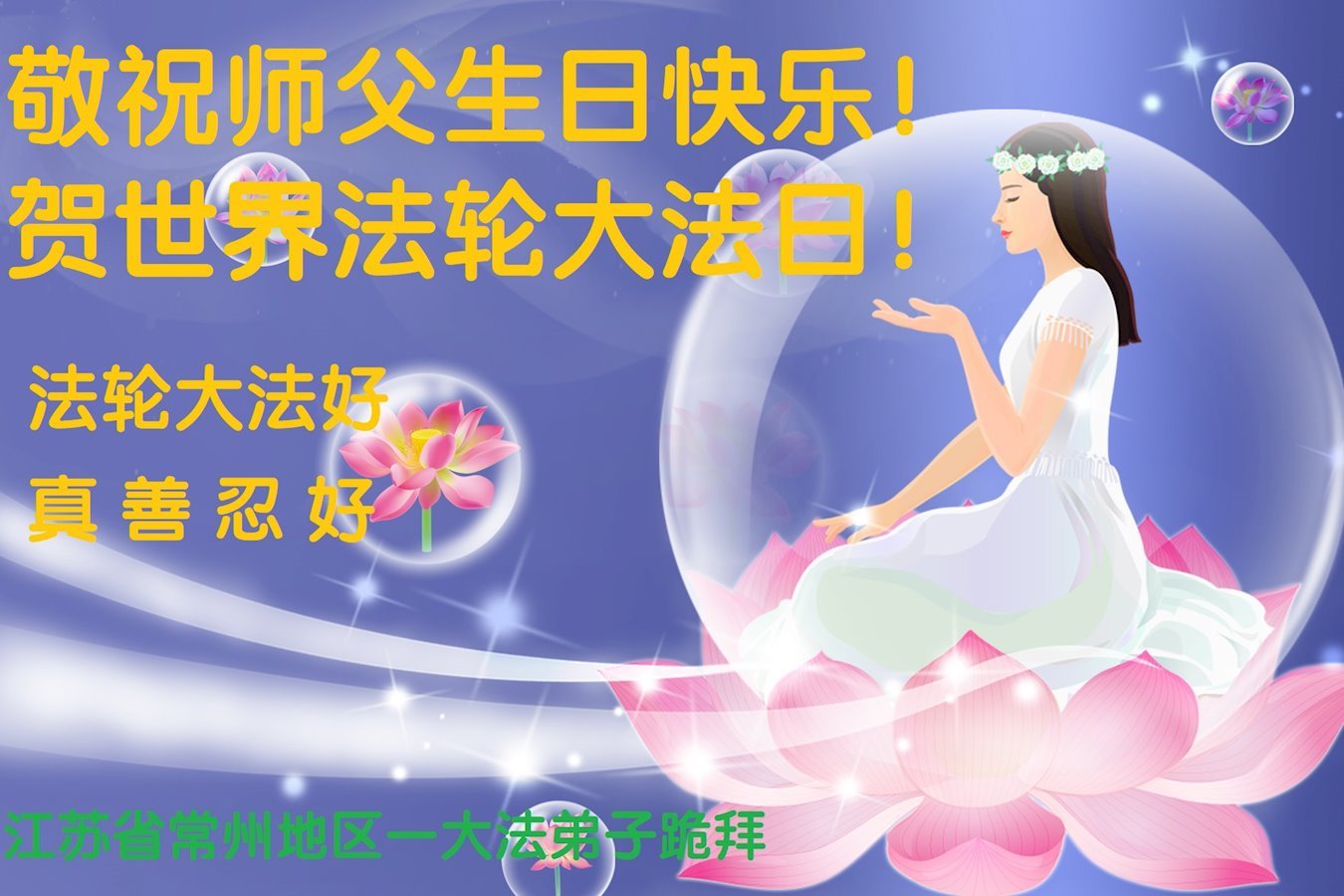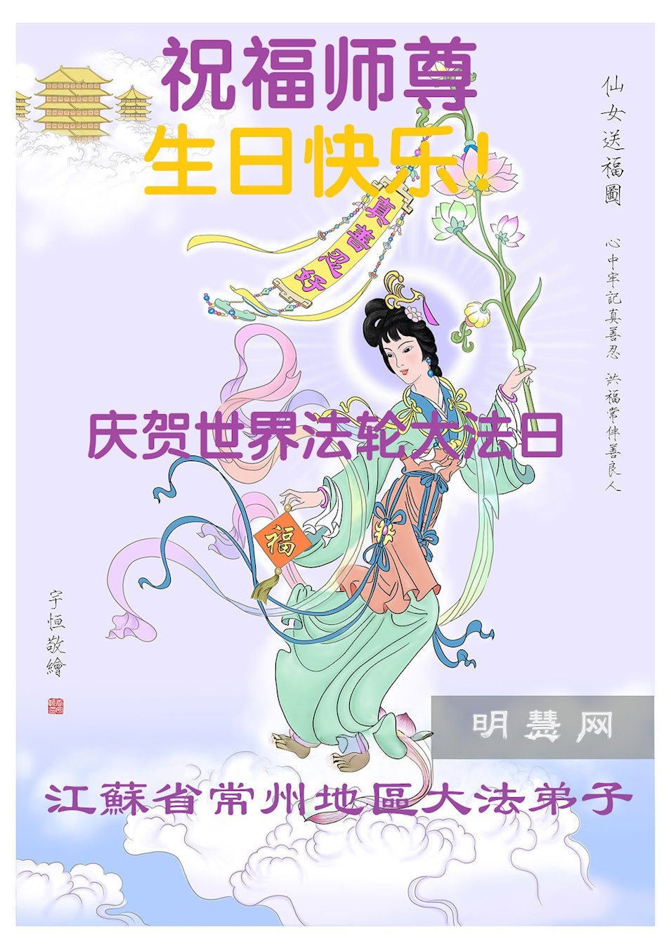 师尊您好,谢谢师尊的慈悲救度! 江苏省常州市两大法弟子敬上 江苏省常州市一大法弟子恭贺世界法轮大法日暨敬祝师尊生日快乐!