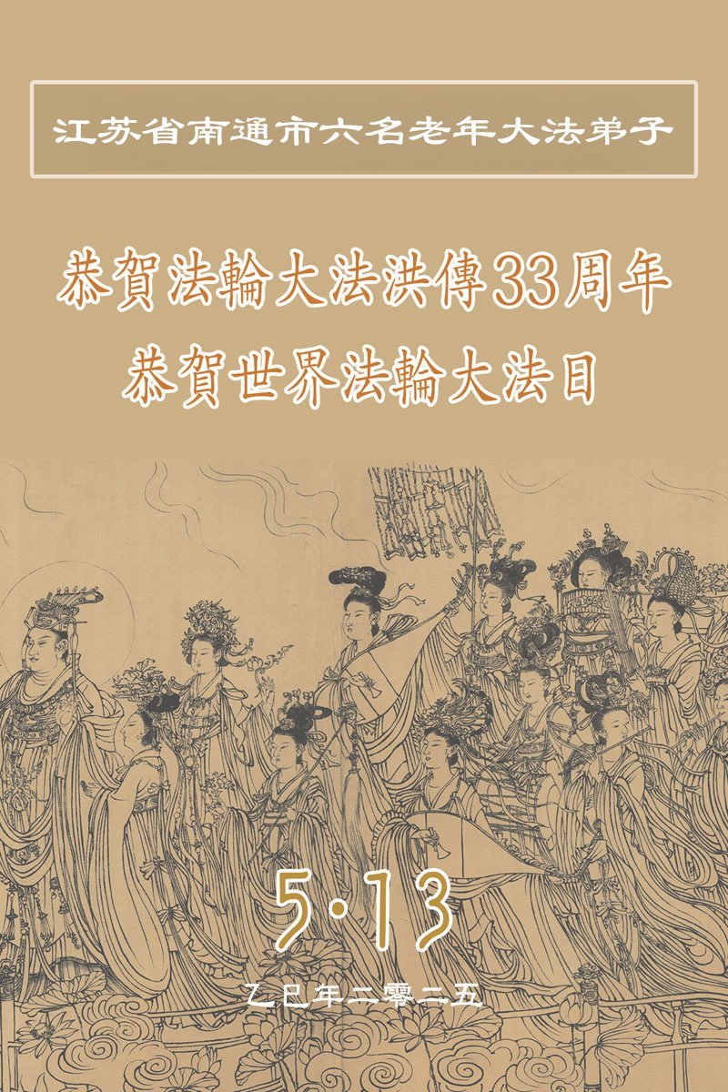 恭祝师尊华诞!普天同庆世界法轮大法日! 江苏省扬州、高邮、宝应及仪征地区全体大法弟子敬上 江苏省南通市六名老年大法弟子恭贺世界法轮大法日!恭祝师父生日快乐!