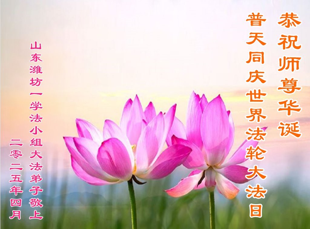 山东省潍坊市寒亭区大法弟子恭贺世界法轮大法日!恭祝慈悲伟大的师尊生日快乐!
