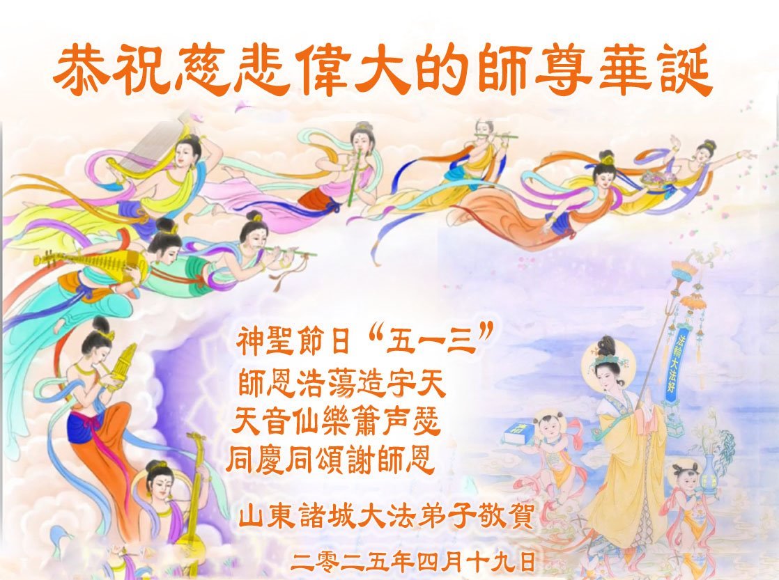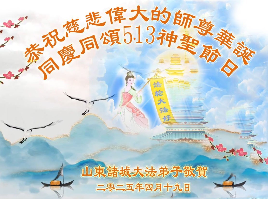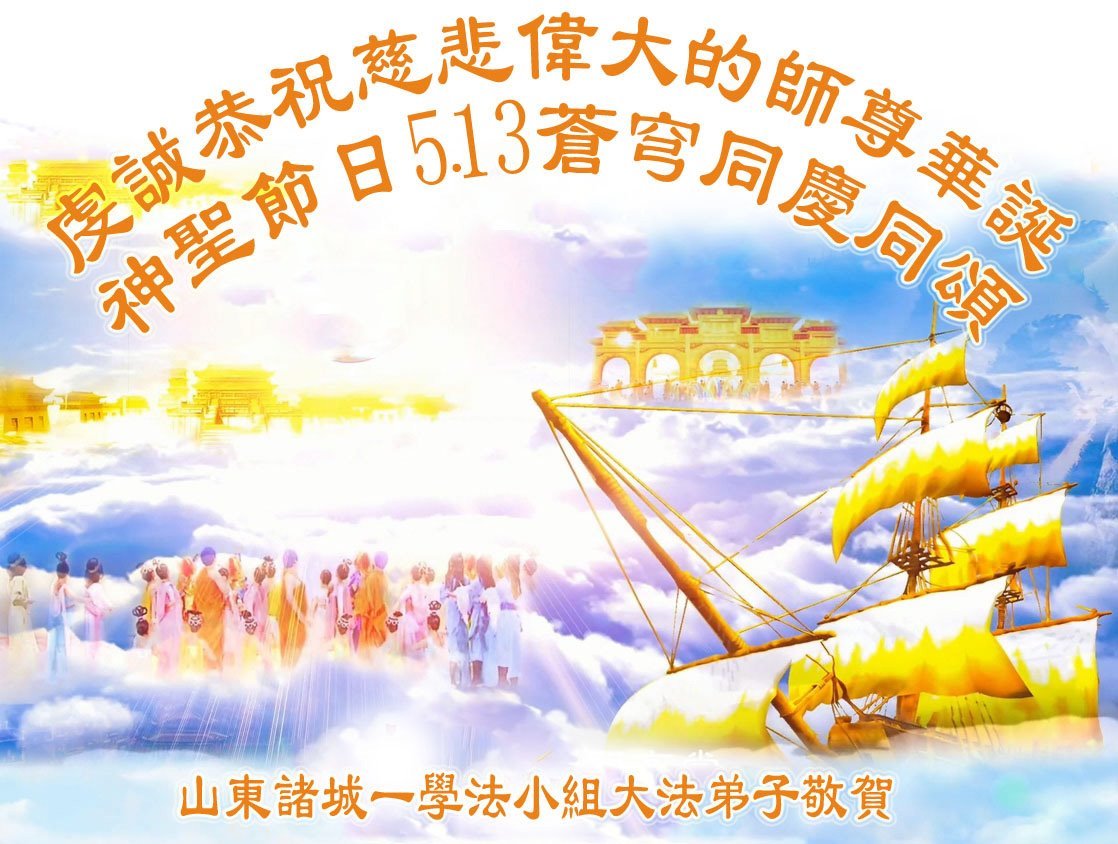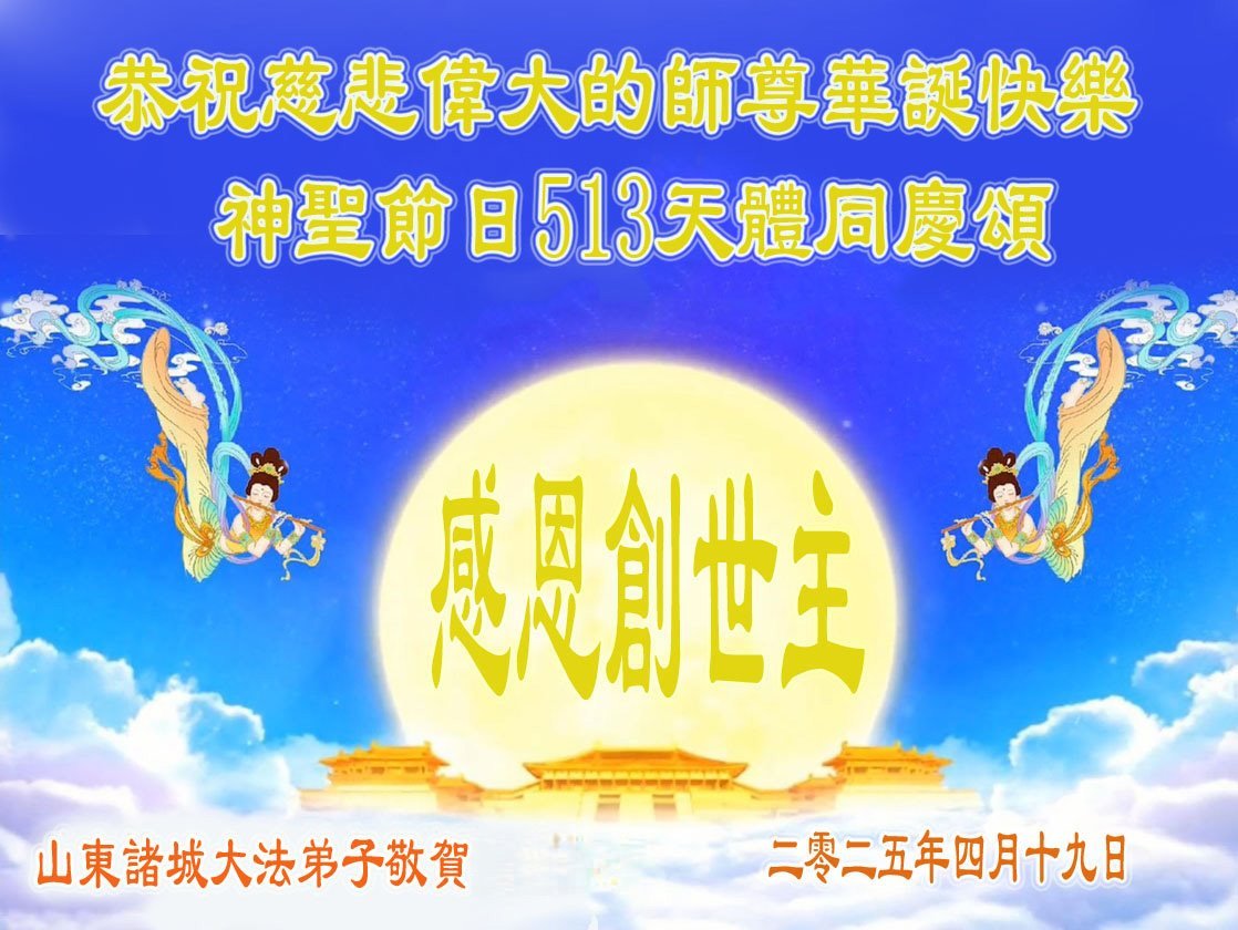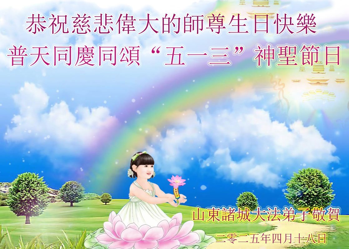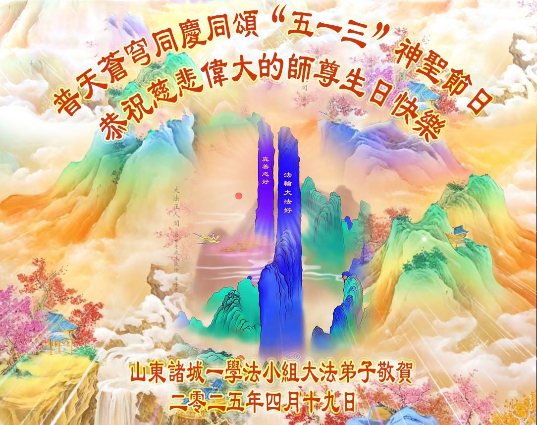 普天同庆同颂“513”神圣节日!感恩师尊的慈悲救度!精進做好三件事,完成神圣使命,圆满随师还! 山东诸城一大法弟子敬上 二零二五年四月十九日 山东省潍坊市诸城市一学法小组大法弟子恭贺世界法轮大法日暨师尊华诞!