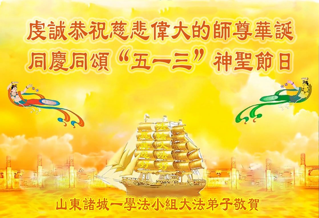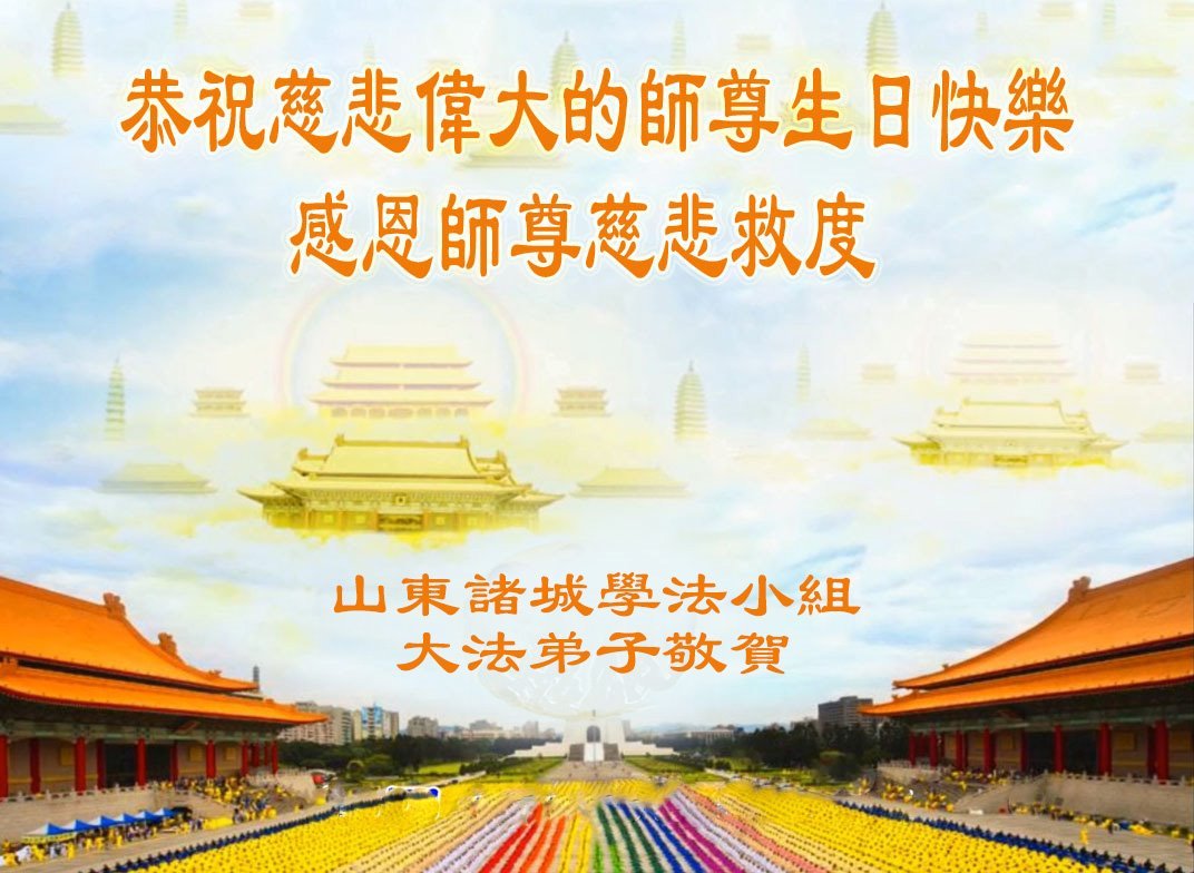 山东省潍坊市诸城市大法弟子恭贺世界法轮大法日暨师尊华诞!