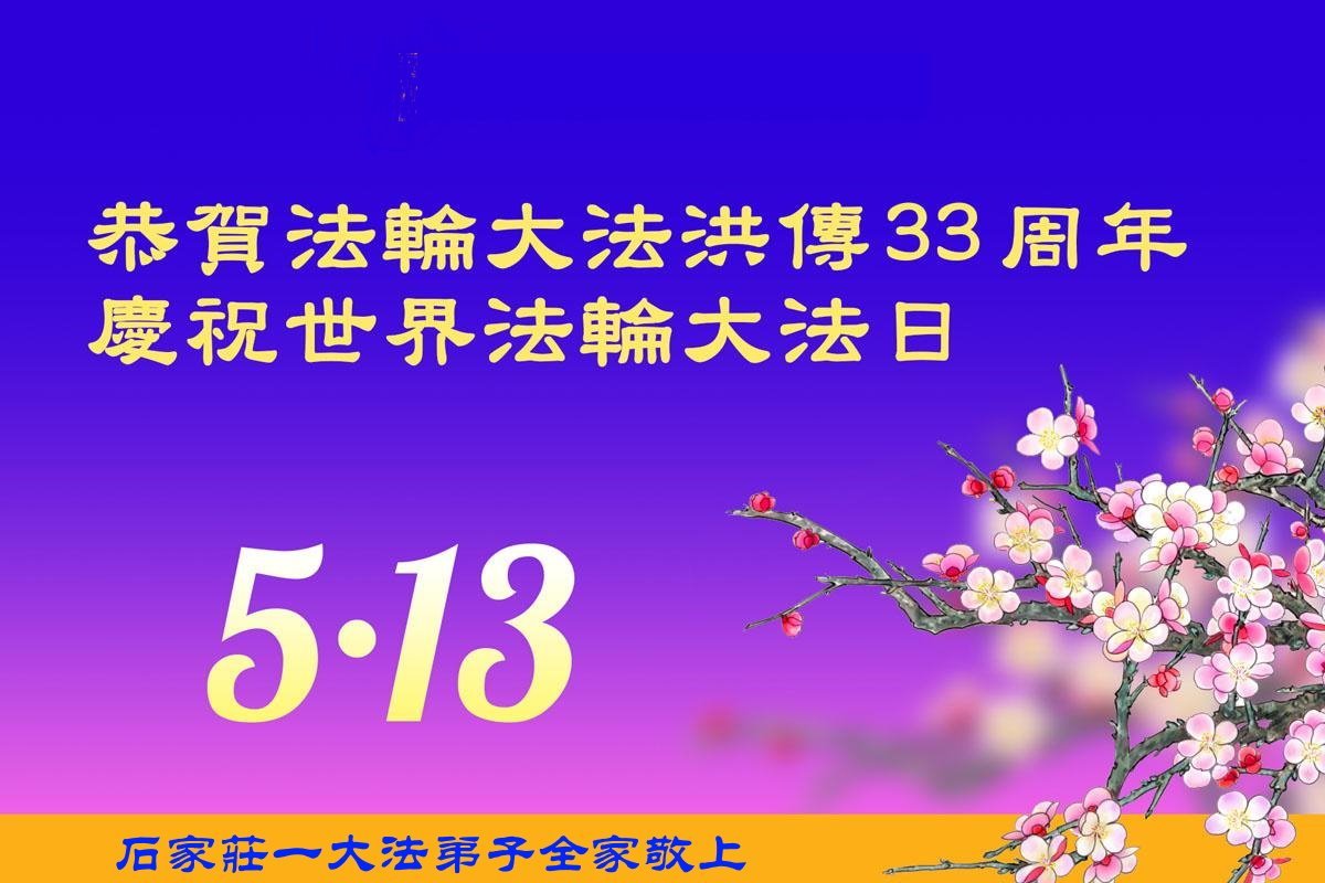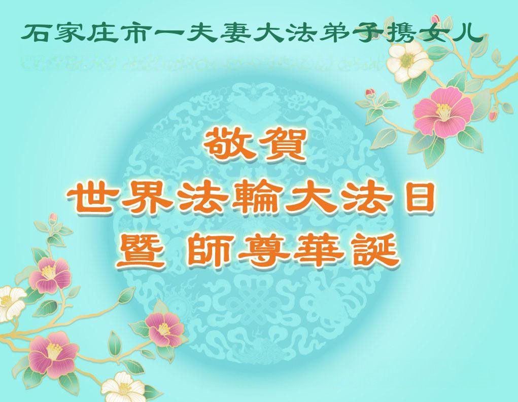 恭贺世界法轮大法日! 恭祝师父生日快乐! 河北石家庄市一夫妻大法弟子携女儿敬上 二零二五年四月二十日 河北省石家庄裕华区一大法弟子恭贺5.13世界法轮大法日!