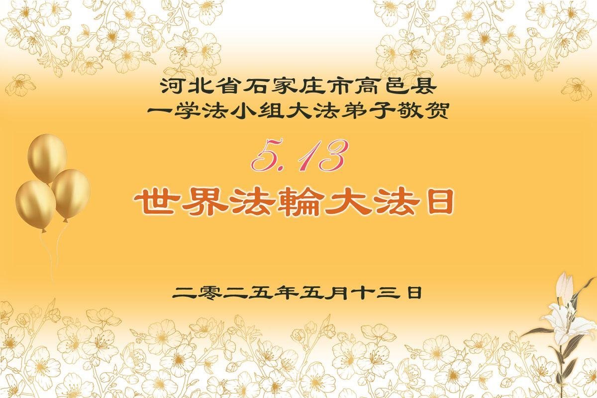【明慧网二零二五年五月十日】 河北省石家庄市高邑县一学法小组大法弟子庆贺世界法轮大法日!恭祝师尊生日快乐!